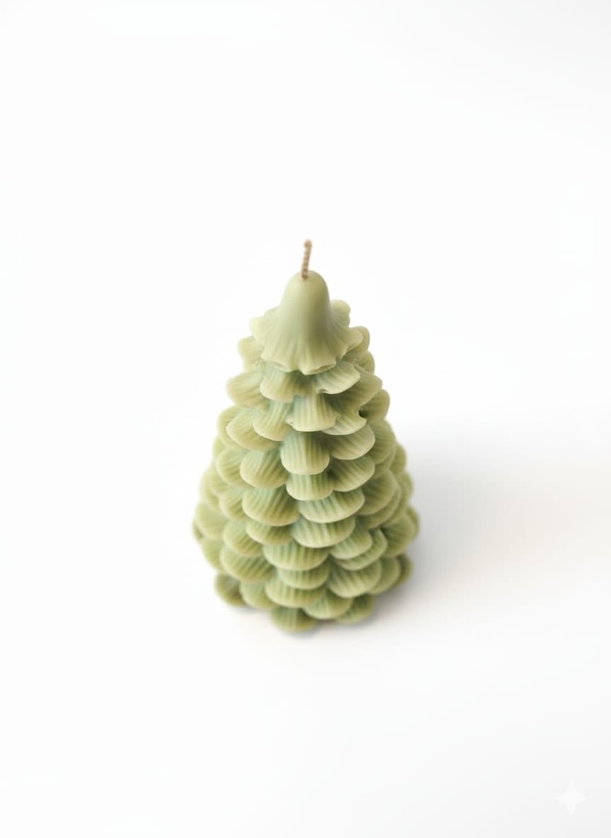 DESIGN: Beautifully crafted Christmas tree-shaped candle with intricate layered details, perfect for holiday decorations and festive displays