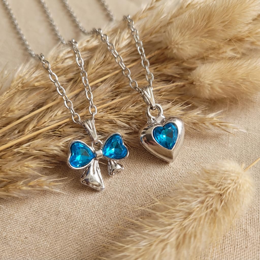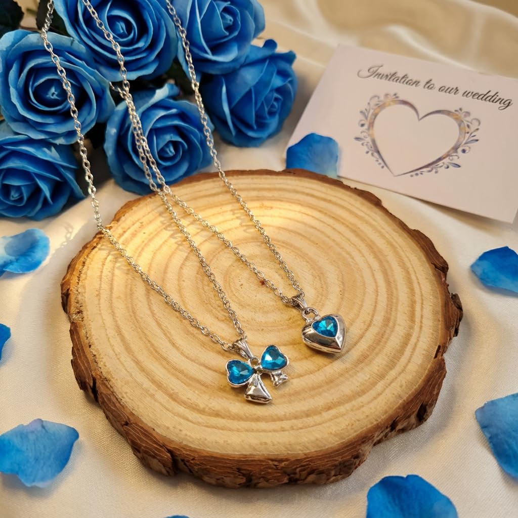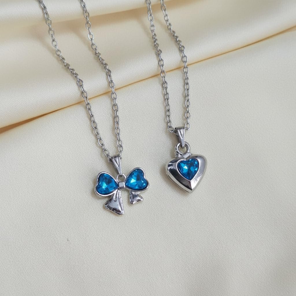 🎀💖 Cute & Elegant Combo Design Add charm to your style with this 2 PCS premium pendant combo, featuring a sweet Blue bow charm and a stylish heart pendant. A perfect mix of cute and classy fashion for girls. 💎 Premium Look & Finish Designed with a smooth, high-quality finish that gives a stylish shine and trendy appearance. ✨ Lightweight & Comfortable Wear Made with skin-friendly materials, these necklaces are lightweight and comfortable for daily use. 👗 Perfect for Everyday Styling Ideal for daily wear, college, outings, casual looks, and parties. Easy to style with western and fusion outfits. 🎁 Great Gifting Option Perfect gift for birthdays, friendship day, Valentine’s Day, festivals, or special surprises. 🌸 Girls Locket Girls Necklace Chain Pendant Chain for Women Trendy Fashion Jewelry