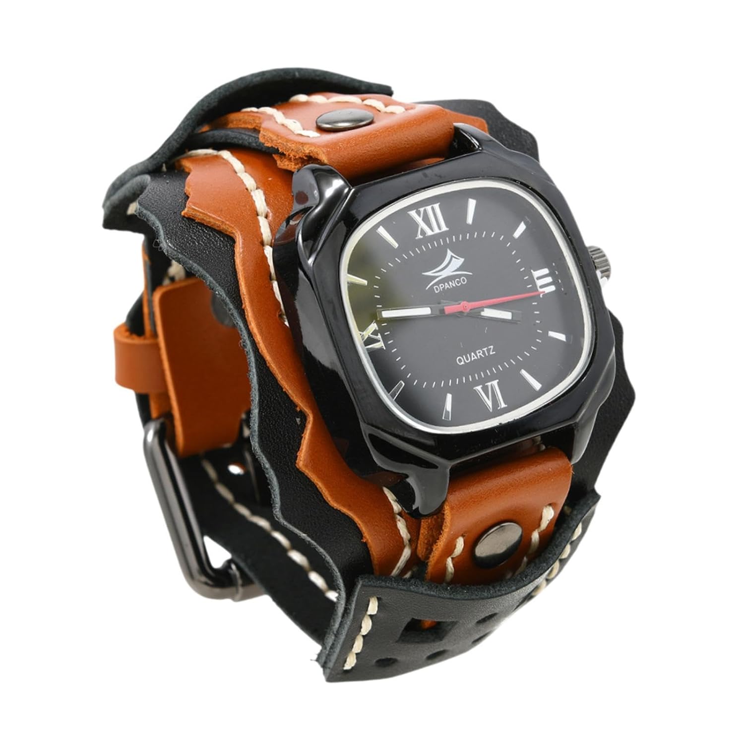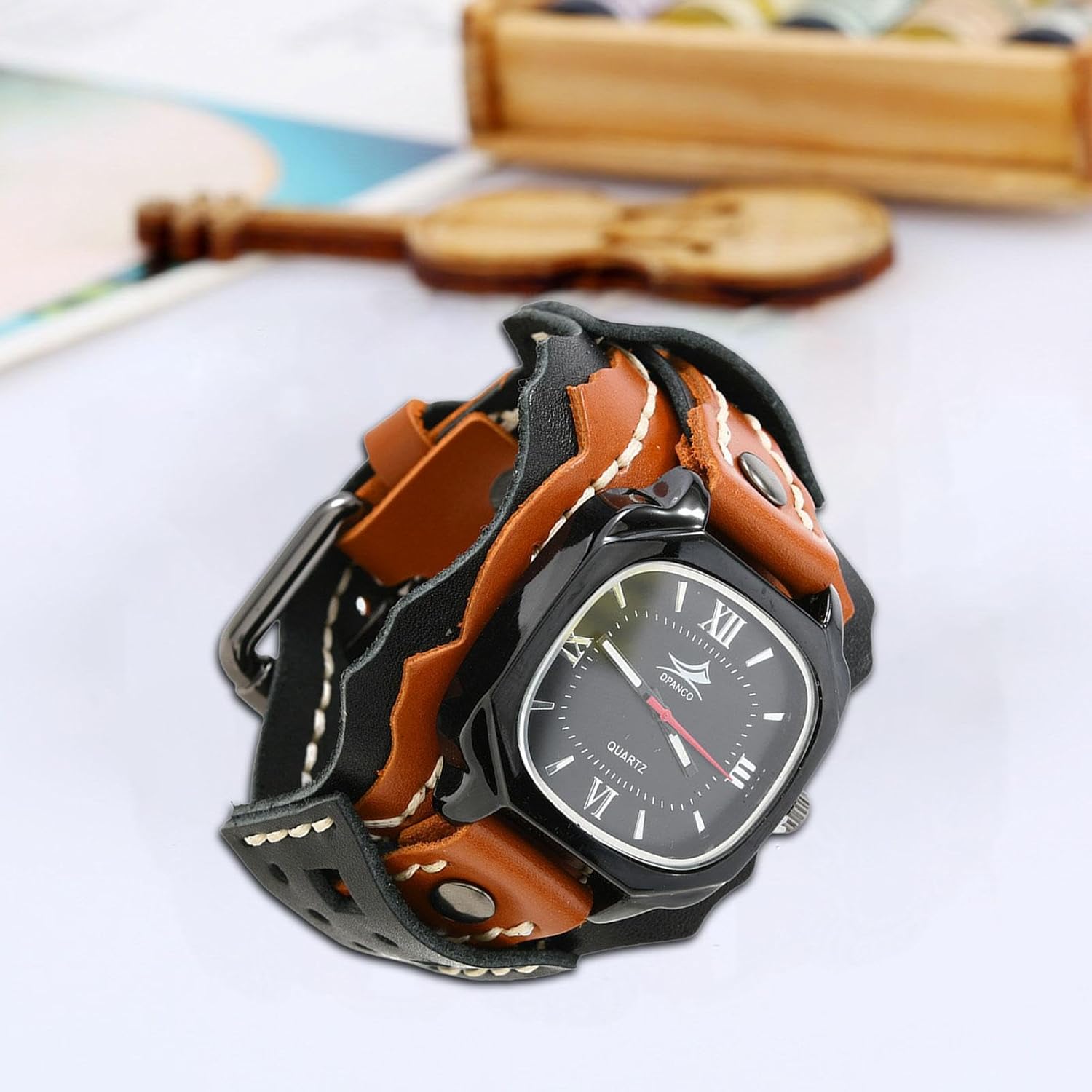 Unique Design‘: This Men’S Leather Watch Bracelet Features A Distinctive And Creative Handmade Stitching Design, Offering A Multi Layered Look That Stands Out With Its Punk Rock Design