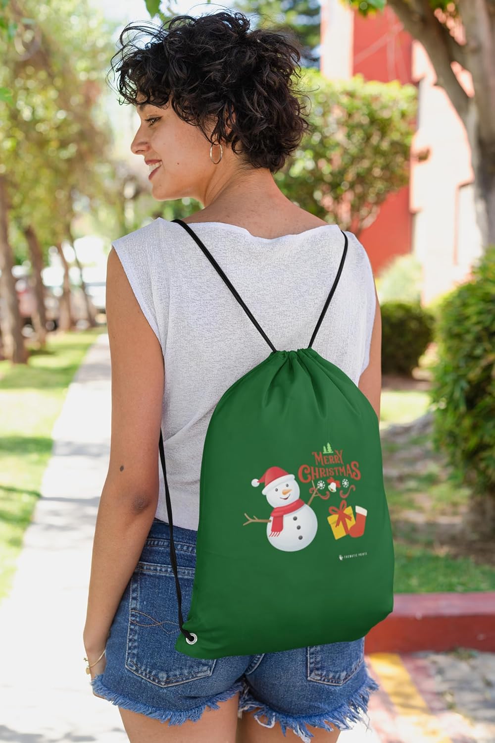 Spread holiday cheer with this festive drawstring bag from Thematic Prints, featuring a charming snowman design perfect for the Christmas season. The cotton drill fabric offers durability while maintaining a sporty, sleek appearance. This versatile bag serves as an ideal companion for gym sessions, casual outings, or holiday shopping trips. The practical drawstring closure ensures your belongings stay secure, while the black cords provide comfortable carrying options as a backpack. Whether you’re heading to fitness classes or running everyday errands, this seasonal bag combines functionality with holiday spirit. The roomy interior provides ample space for your essentials, making it a practical choice for various activities throughout the festive season and beyond.
