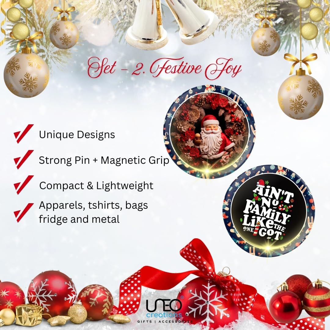 Pack of 2 Festive Badges: Get double the joy with two delightful Christmas-themed badges—perfect for gifting, decorating, or sharing with loved ones.
