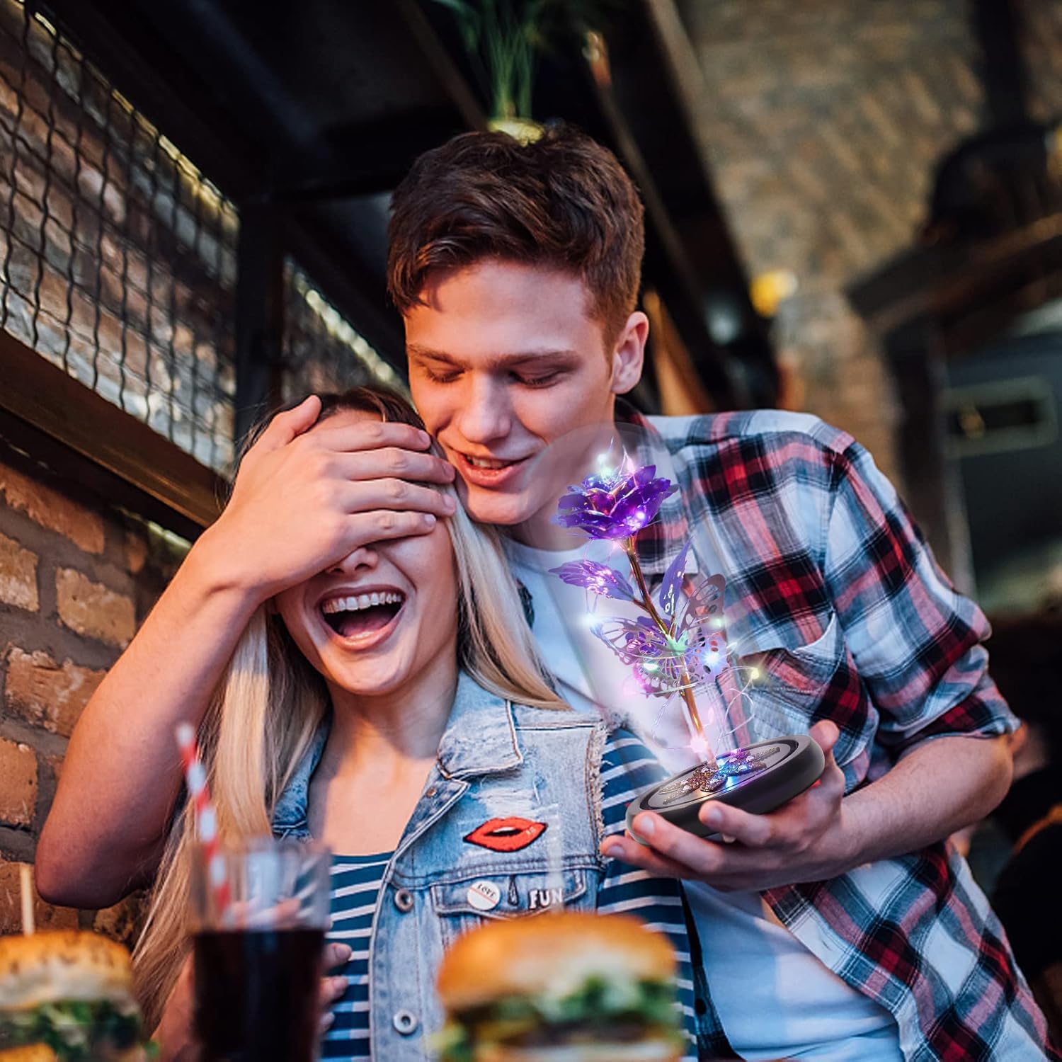 Warm Galaxy Rose Birthday Gift for Women: bkqptl Purple Forever Roses Gift Flower: Will never wither away, symbolize everlasting love; and the butterfly symbolizes hope and good wishes; The Petal-shaped crystal pasted on base, a symbol of toughness and eternity; while illuminated by the string of lights more luxurious, exquisite and full of artistic sense. It is a unique artwork, Very suitable as valentines day gifts, anniversary gifts or birthday gifts for your mom, wife, girlfriend or daughter