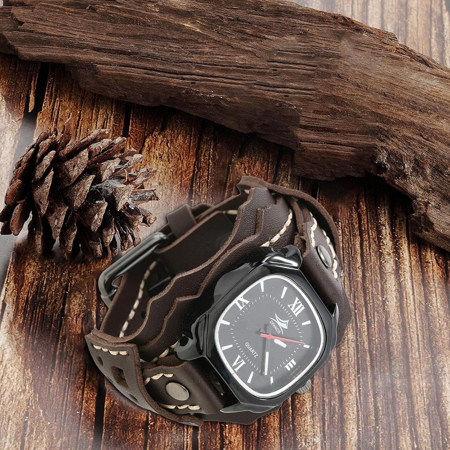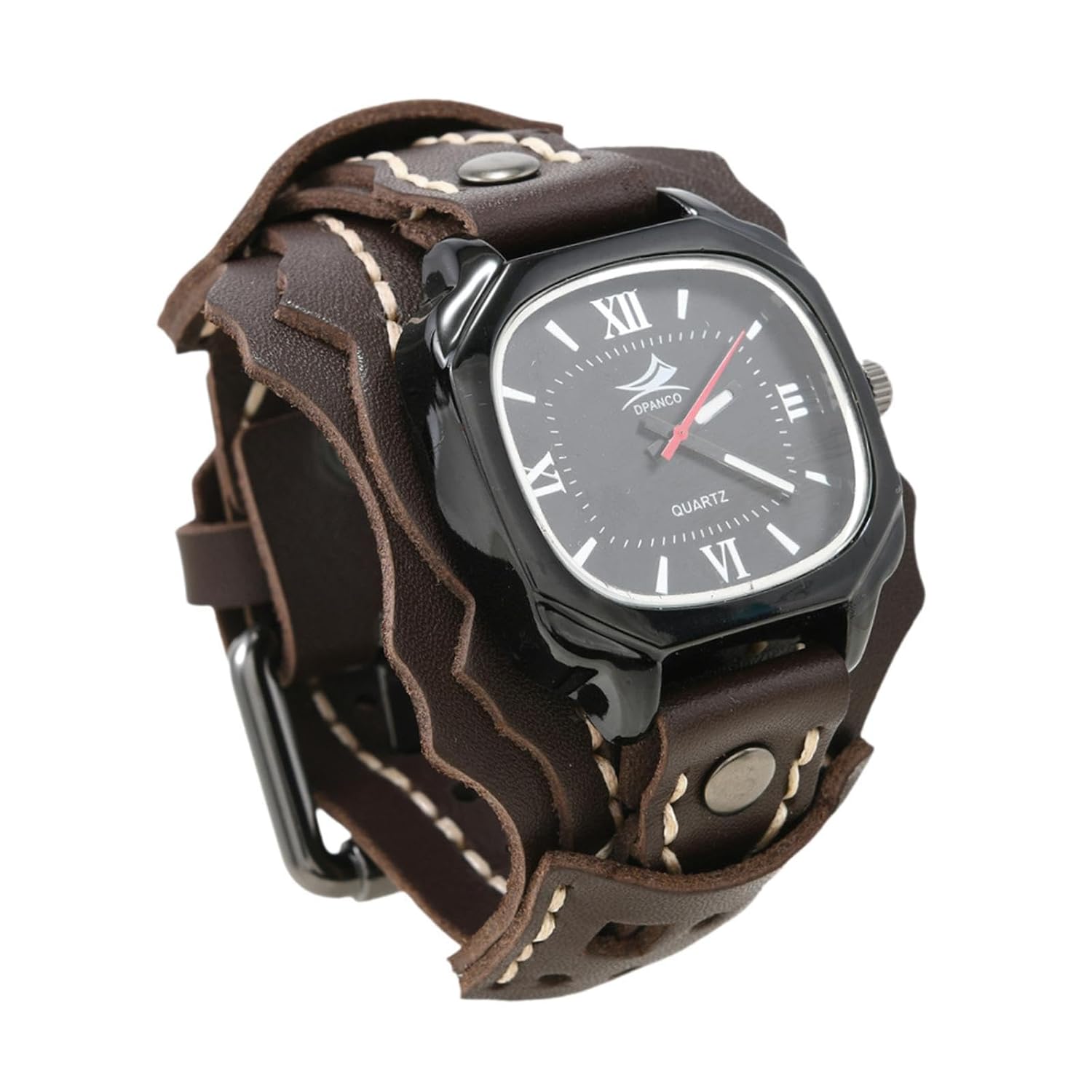 Unique Design‘: This Men’S Leather Watch Bracelet Features A Distinctive And Creative Handmade Stitching Design, Offering A Multi Layered Look That Stands Out With Its Punk Rock Design