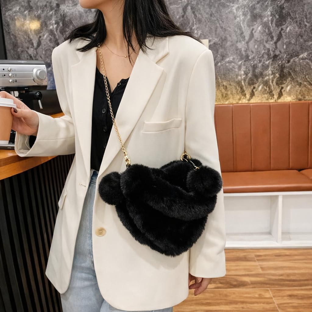 Women’s and girls’ trendy shoulder bags with faux fur purses in the shapes of hearts and fluffy handbags Specifications: Gender: Women, Girls Artificial fur Messenger bag/handbag style. Crossbody, Shoulder, or Wallet Purse Style: Casual, style Colours: Red, Pink, Yellow, White, Brown, Light Pink, and Purple. Type of closure: Zipper Size: 9.04 x 7.86 x 1.18 inches/23 x 20 x 3 cm Shoulder strap length: 120cm/47.24 inches, Removable Features: 1. The craftsmanship on the bag is flawless. Your lovely disposition can be displayed in the sophisticated design. 2. A more considerate design for you. alter as desired. It might also feel liberated to change. 3. It is ideal for weddings, parties, formal events, daily wear, travel, and business settings. 4. A lovely present for Valentine’s Day, Mother’s Day, a birthday, Christmas, Thanksgiving, New Year’s, or another anniversary. Packages contain: 1 heart-shaped tote bag