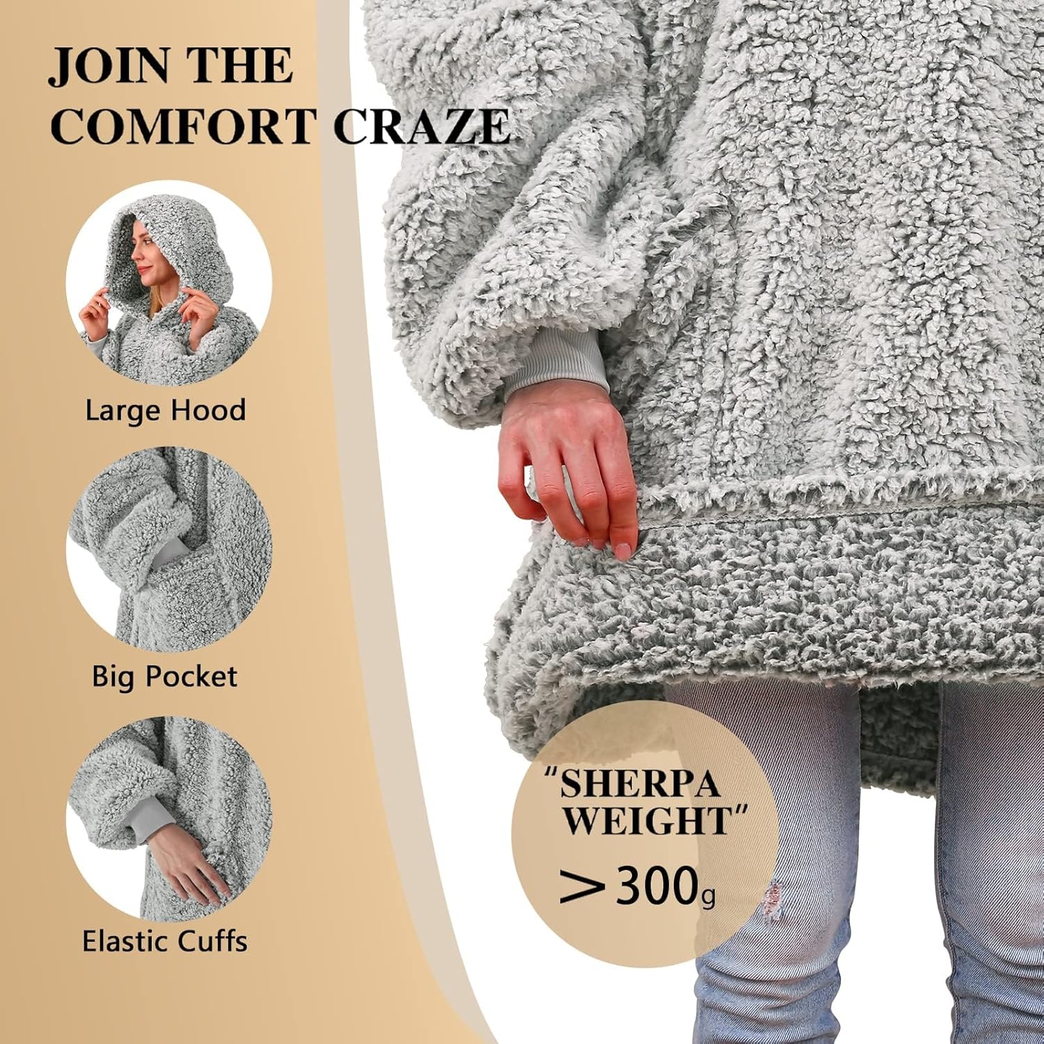 ① Blanket hoodie with sleeves cover shoulders, arms, allows you to move around, bring you a lighter and warmer winter.