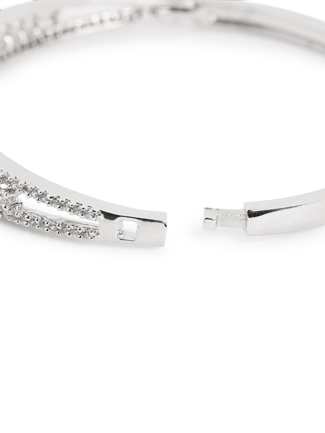 Elevate your look with this sparkling sphere bracelet, designed with a dazzling AAA Cubic Zircon stones studded centerpiece and rows of shimmering cubic zircon on each side. Bold yet elegant, it’s the perfect choice for cocktail nights, parties, or festive occasions. Secured with clip on closure. This comes with 1 year plating warranty, anti-tarnish for lasting shine and comfort. Size upto 2.6