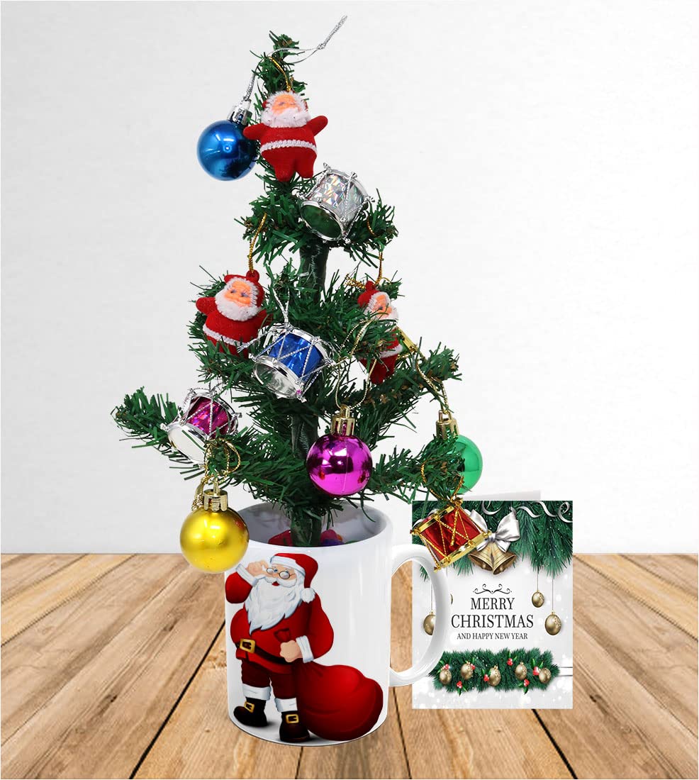 Package Content: 1 Printed Mug (11 Oz., 325 ml Capacity), 1 Christmas Tree, 10 Pcs Christmas ornaments Mix,1 Christmas Wishes Greeting Card,