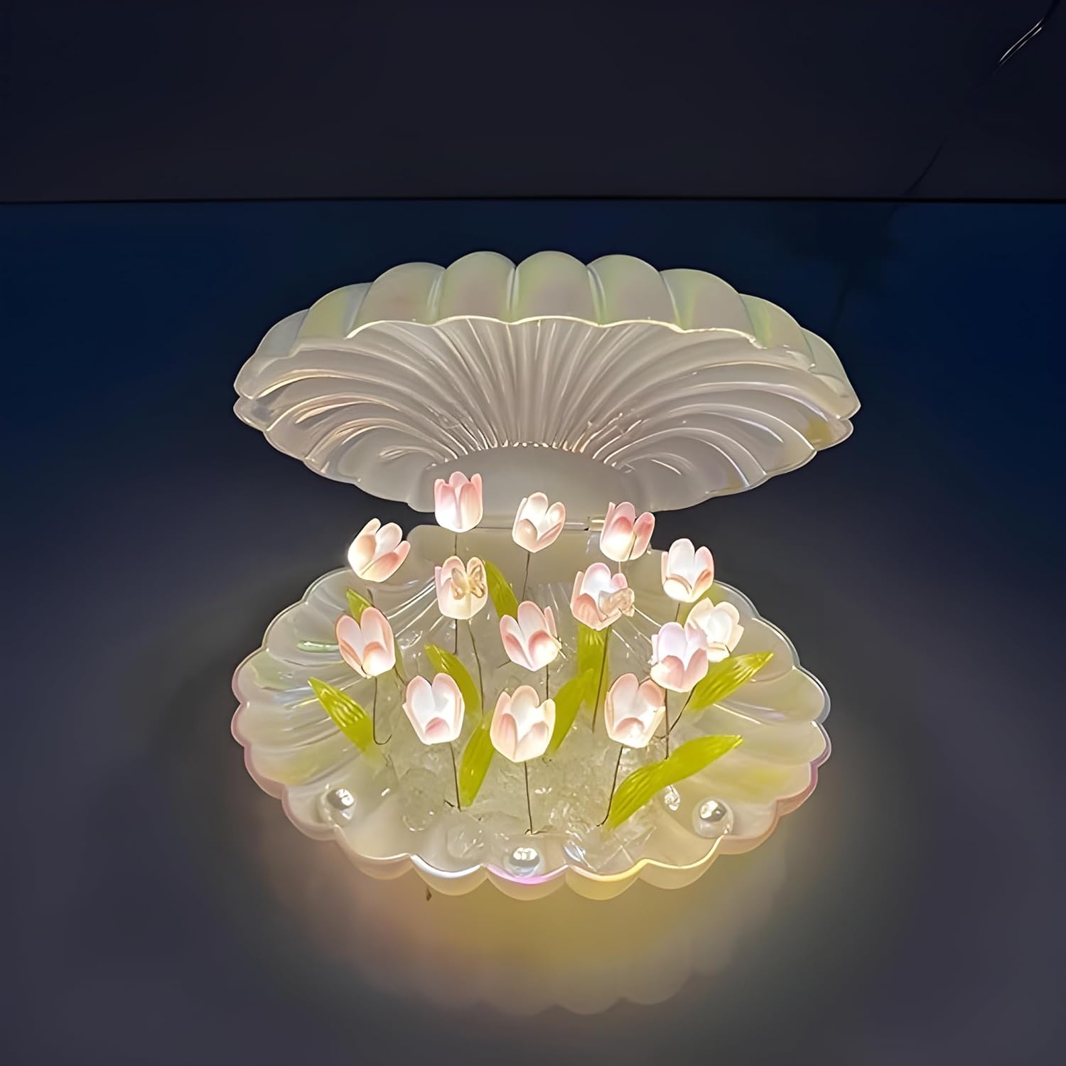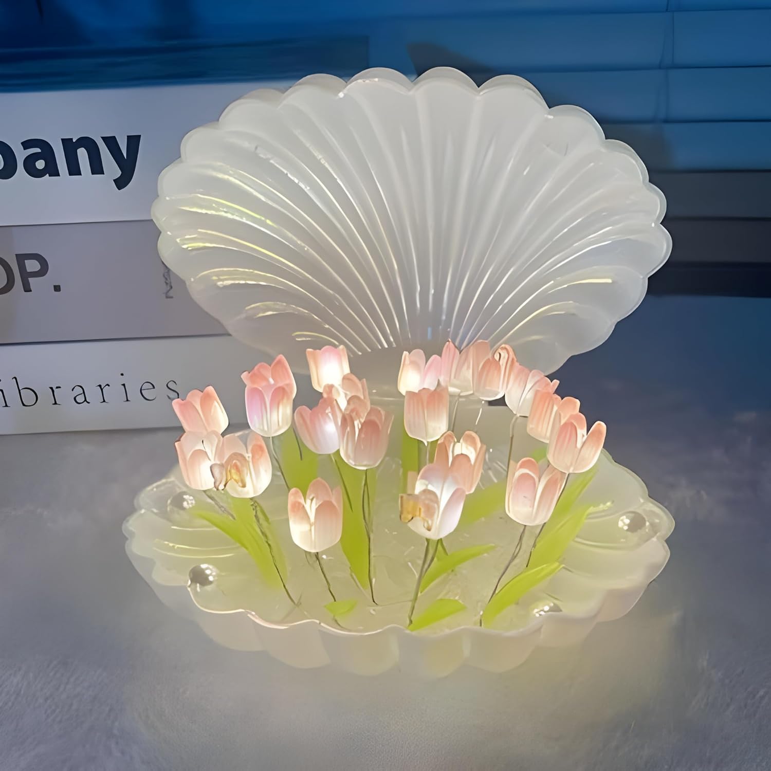 Shell Tulip Night Light: Our handicraft designers combine tulip flower LED lights with shell-shaped shells to design a romantic and warm night light.