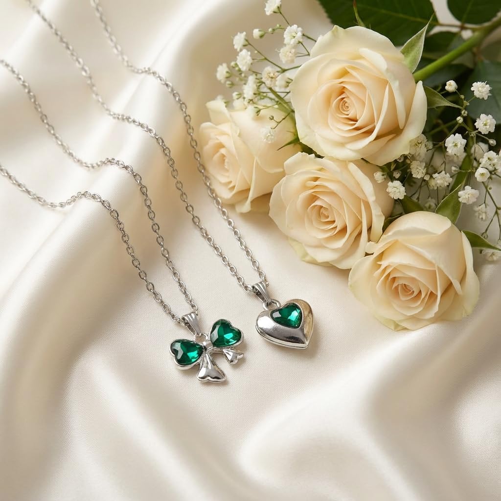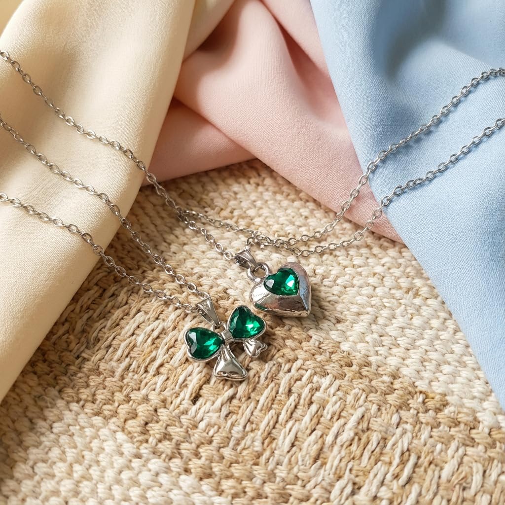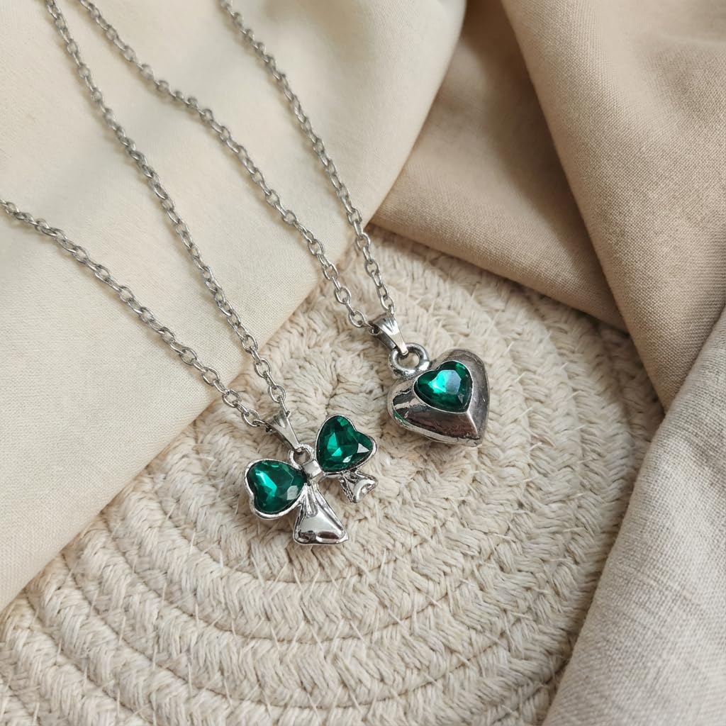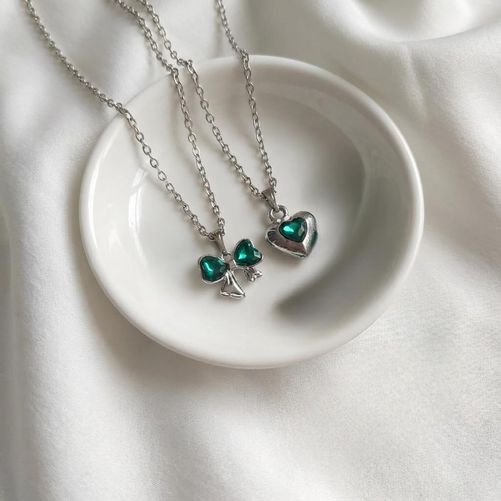 ππ Cute Korean Combo Design Upgrade your look with this 2 PCS stylish Korean jewelry combo, featuring a charming green bow pendant and an elegant heart pendant. A perfect blend of cute and classy style for women and girls. β¨ Premium Finish & Trendy Look Designed with a smooth, high-quality finish that adds a fashionable shine and premium appearance. π Lightweight & Comfortable Wear Crafted with skin-friendly materials, both necklace chains are lightweight and comfortable for daily use. π Perfect for Everyday & Party Wear Ideal for daily wear, college, outings, parties, and casual occasions. Pairs beautifully with western and fusion outfits. π Perfect Gifting Choice A lovely gift for birthdays, friendship day, Valentineβs Day, festivals, or special surprises for girls and women. π Trendy Korean Style Combo Set Fashion Jewelry