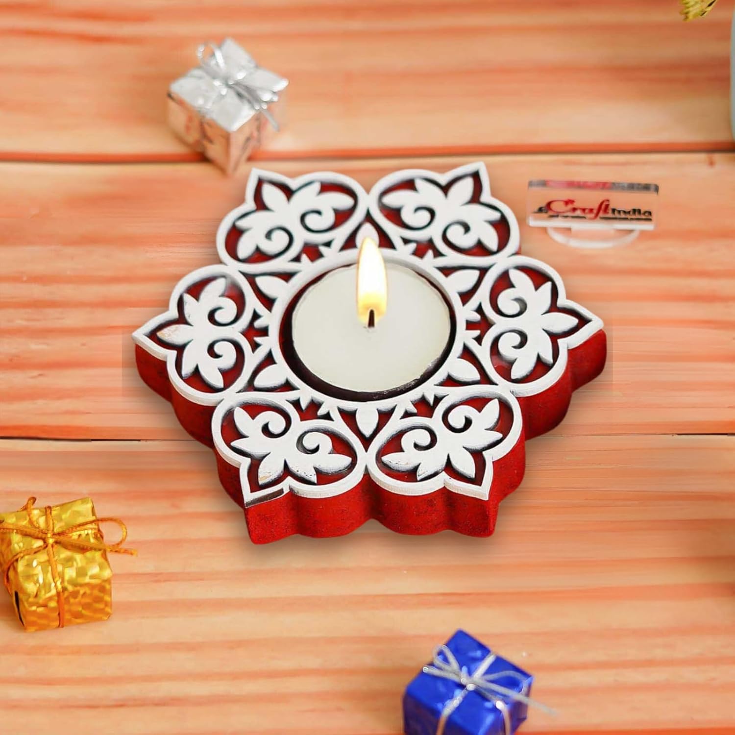 Brighten up your home decor with these set of 2 white and red floral printing block tea light candle holders. Crafted for elegance, these home decor showpiece items are ideal for festive setups or as a unique gift showpiece for loved ones. Bring festive charm to your space with beautiful Christmas Decorations and sparkling Christmas Tree Decoration Items